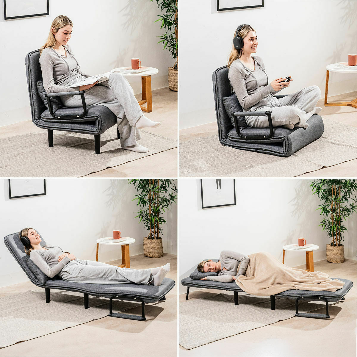 - 4-In-1 monipuolinen, monikäyttöinen: muunneltavassa vuodesohvassamme on tyylikäs ja käytännöllinen design, joka mukautuu helposti kodin sisustukseen. Sen voi nopeasti ja helposti muuntaa lukuisiin erilaisiin käyttötarkoituksiin. Sitä voi käyttää tavallisena nojatuolina, lattiatuolina (pelaaminen), lepotuolina ja yhden hengen vuoteena.