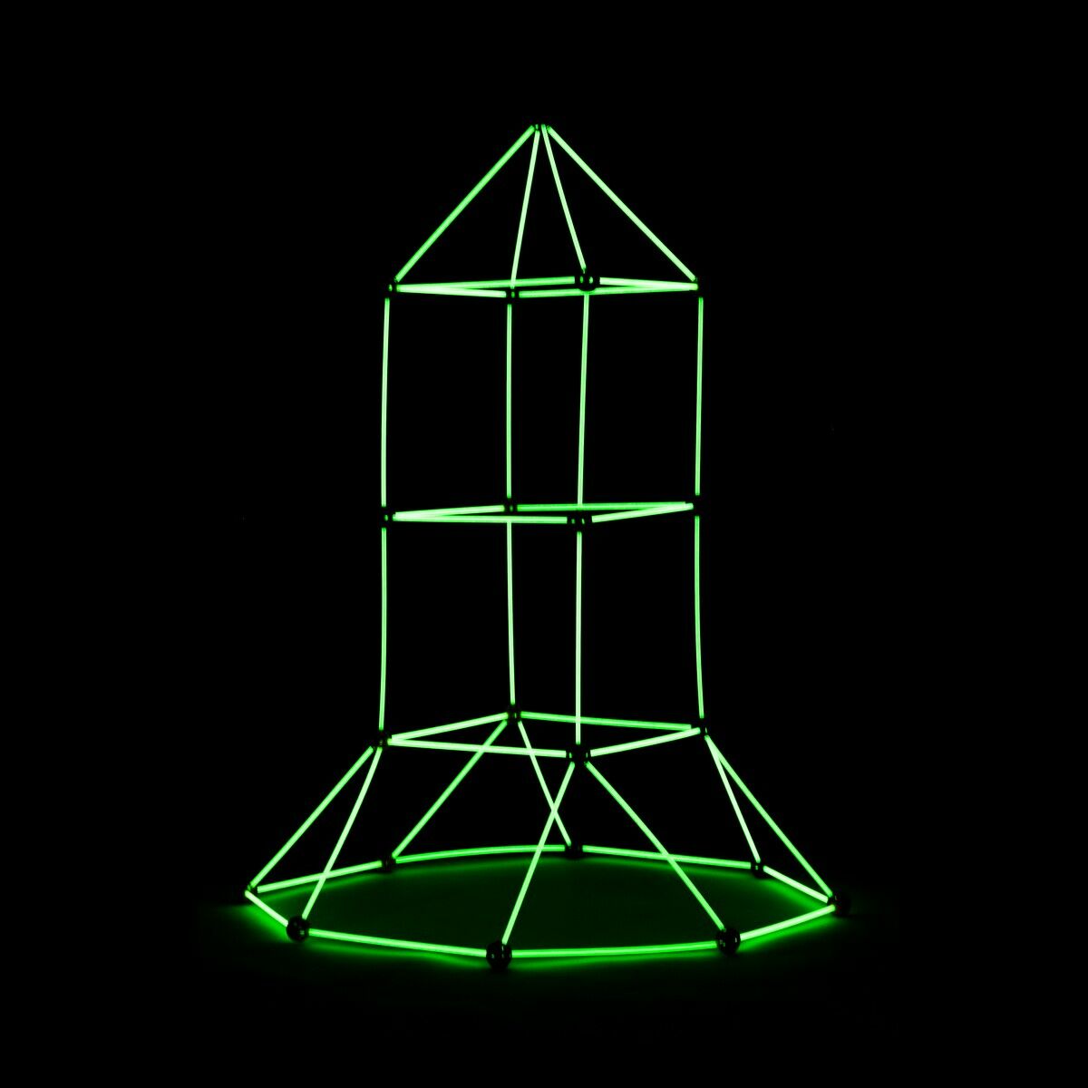 - Rakennussetti, 85 palaa: linnoituksen rakennussettimme sisältää 31 palloa liitosaukoilla, 54 pimeässä loistavaa tankoa, suojakankaan, kantolaukun kaikkien palojen kätevää säilytystä ja kuljetusta varten estäen niiden häviämisen sekä ohjekirjan, jossa on kuvat esimerkkirakennuksista.