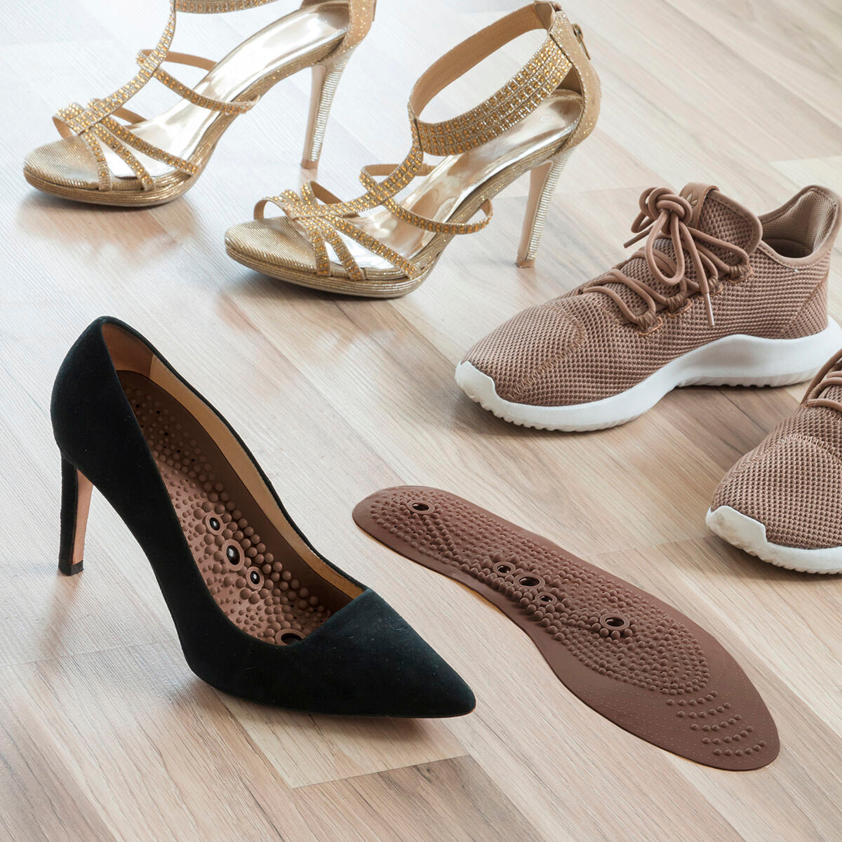 Niiden innovatiivinen design lisää mukavuutta ja tuo rentouttavaa hyvänolon tunnetta. Strategisissa kohdissa olevat magneettiset painantapisteet stimuloivat ja hierovat jalkoja kävelyn aikana. Pohjallisissa on reiät hengittävyyttä lisäämässä ja hajuhaittoja estämässä.